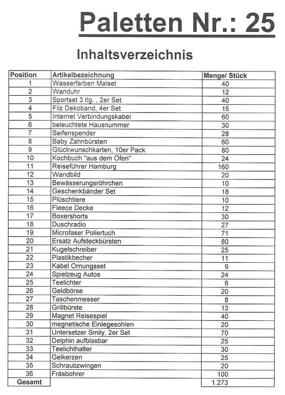 Sadržaj paleta: 1.273 St. nekoliko članaka!