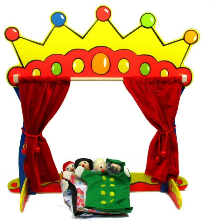 Lutkarsko kazalište s zavjesama i 4 različite lutke.